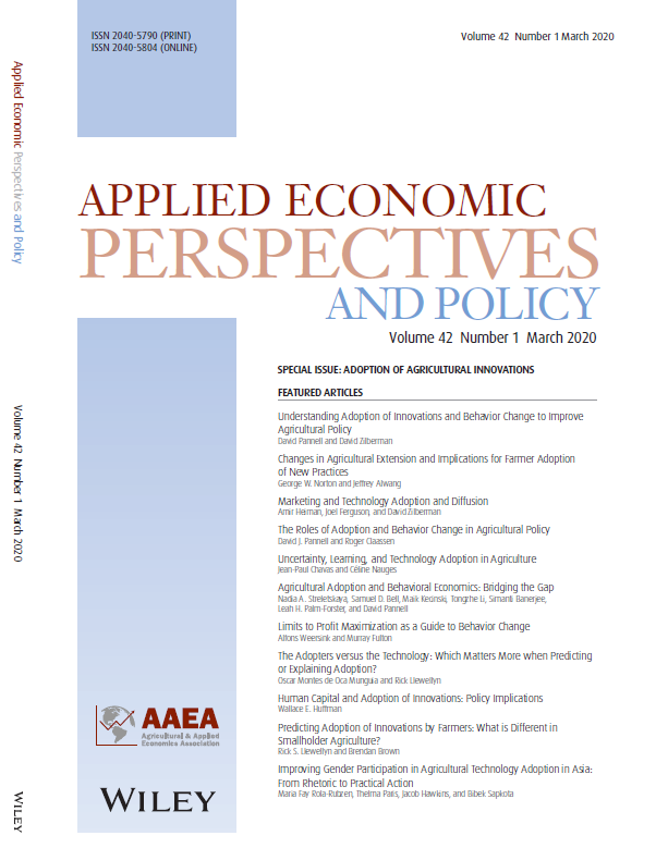 Pannell, D.J. and R. Claassen. 2020. The Roles of Adoption and Behavior Change in Agricultural Policy. Applied Economic Perspectives and Policy 42(1), 31-41.